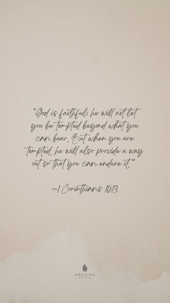 “So, if you think you are standing firm, be careful that you don’t fall! No temptation has overtaken you except what is common to mankind. And God is faithful; he will not let you be tempted beyond what you can bear. But when you are tempted, he will also provide a way out so that you can endure it.” -1 Corinthians 10:12-13